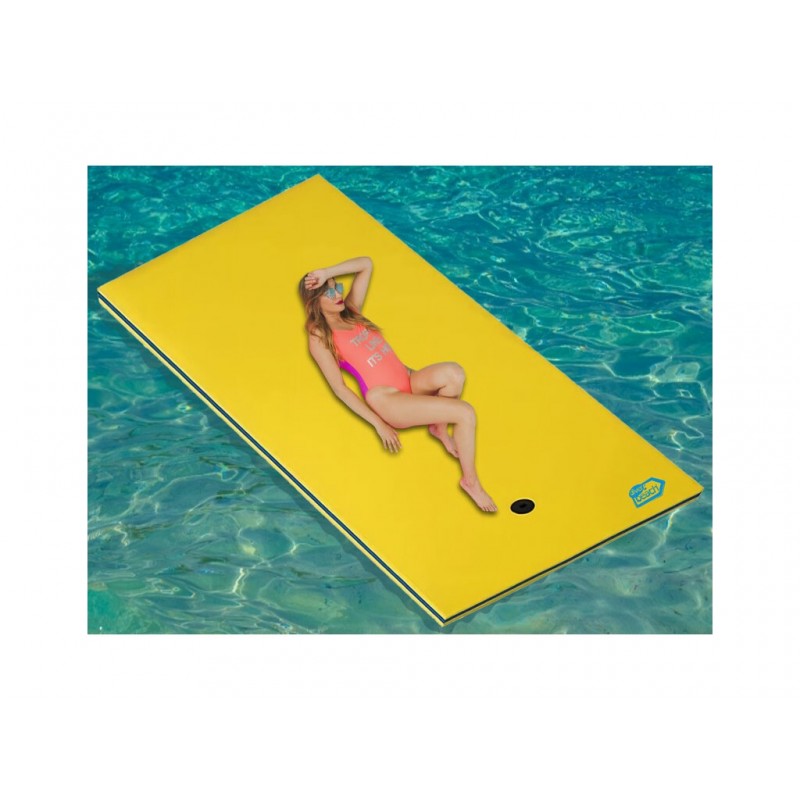 Relaja el cuerpo y la mente mientras flotas en el agua, gracias a esta Alfombra Enrollable Flotante. La fabricación de esta maravillosa alfombra ha sido realizada con polietileno, refuerzo de poliéster y espuma XPE impermeable de gran resistencia, en color azul y amarillo. Una alfombra enrollable con un peso de unos 6,5 kg aproximadamente, y capaz de soportar hasta 250 kg de peso. Ideal para dos personas y con todas las medidas de seguridad necesarias para el disfrute durante el baño. Su amplio tamaño se compacta de manera sencilla cuando lo enrollas, y podrás llevarlo de manera sencilla donde quieras. Dispone de una amplitud de 270 cm de largo por 150 cm de ancho y tan solo 3,3 cm de grosor. Puedes usarla de manera fija en una zona segura para evitar que se mueva con el agua, usando los anclajes de los que dispone, solo necesitaras adquirir por separado la cuerda para ello, que se vende por separado. Los días de playa serán más divertidos y seguros gracias a este de ocio que te permitirá estar de relax, sin tener que hincharla ahorrando tiempo y esfuerzo.