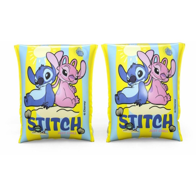Añade seguridad y estilo al Verano más refrescante de los peques de la casa, de la mano de estos nuevos y geniales Brazaletes Hinchables Stitch de 15x23 cm. Un par de manguitos hinchables muy especiales por su diseño seguro y resistente, inspirado en Stitch y Angel de Disney. Ayuda y motiva a los peques a disfrutar de un Verano seguro y lleno de protagonistas, de la mano de hinchables tan geniales y coloridos como este. Echa un vistazo a nuestro gran surtido web y encuentra flotadores, gafas de bucear, chalecos hinchables, juegos de natación y muchas más geniales opciones al mejor precio. El pack incluye: + Un par de manguitos hinchables de color azul y amarillo con diseño a rayas, la imagen de Stitch y Angel a todo color y muchos más detalles geniales. Información de interés sobre la piscina: + Cada brazalete hinchable mide aproximadamente: 23 cm de largo x 15 cm de ancho. + Edad recomendada para su disfrute: De 3 a 6 años.