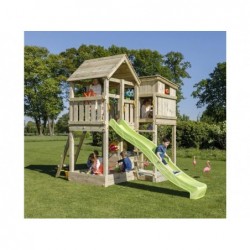 Hazte con esta innovadora zona de juegos infantiles, llévate a casa el Parque Infantil con Columpio Doble Pagoda XL de Masgames y multiplica la diversión en casa y al aire libre. Este genial artículo se ha fabricado en madera de gran calidad y resistencia, perfectamente tratada para su uso y mantenimiento en el exterior. Horas de diversión y ejercicio espera a los peques, podrán escalar, columpiarse, deslizarse y mucho más. Arena y accesorios (campana, periscopio, telescopio...) no incluidos junto al pack. Edad recomendada para su uso: De 3 a 12 años. El pack incluye: Parque infantil Pagoda XL con columpio doble con asientos de plástico, torre Pagoda, rampa de tobogán, estructura para el columpio doble, arenero, escalera vertical, escalera horizontal y anclajes y tornillos para su instalación. Medidas aproximadas de la torre con el doble columpio: 338 cm de alto, 486 cm de ancho y 467 cm de largo. Longitud aproximada del tobogán: 3 metros de largo. Altura aproximada de la plataforma de la torre: 150 cm.