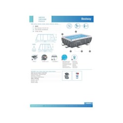 - Superficie aproximada que ocupa la piscina con las patas: 332 cm de largo y 246 cm de ancho. Contiene: - Liner color gris en sistema Tritech, de 3 capas con refuerzo de poliéster y láminas de PVC, resistentes a productos químicos, rayos solares y presión del agua - Depuradora filtro cartucho para 1.249 l/h Ref.58381, para cartucho Ref 58093 incluido - DVD de instrucciones