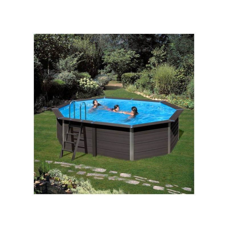 Piscina Composite Pool GRE KPCOV80. Madera. 804 x 386 x 124 cm. ¡Ideal para tu jardín o terraza! Los modelos Composite se confeccionan combinando harina de madera y polímeros. Características: - Garantizada y con servicio post venta por un fabricante nº uno en piscinas demontables y enterradas de alta calidad. - Embellecedores en aluminio Medidas: - 804 x 386 x 124 cm (largo x ancho x alto) - Superficie precisa para montaje: 844 x 506 cm (largo x ancho) - Cabida 27.000 l. Contiene: - Depuradora de arena para 5 m3/hora - Arena incluida - Liner azul PVC grueso 60%, de gran calidad, tratado anti rayos-UVA prolongando su vida útil - Manta poliéster para protección del suelo - Escalera en Acero Inoxidable - Escalera Composite Inoxidable - Smart Plug.