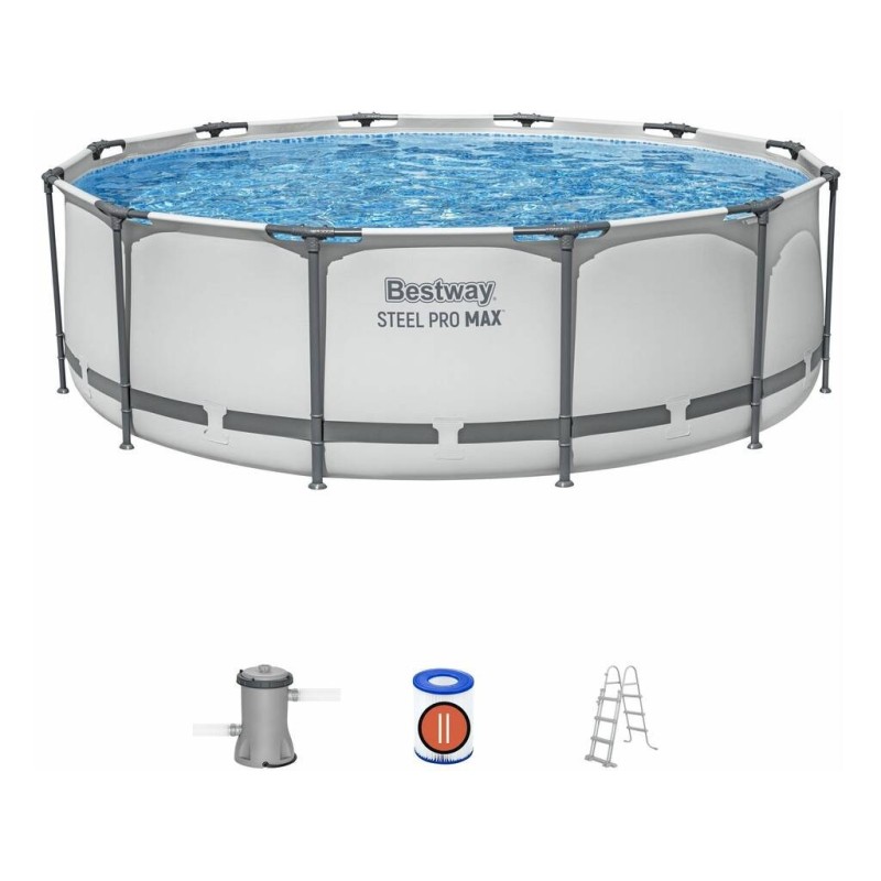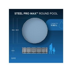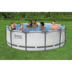 PISCINA REDONDA DESMONTABLE BESTWAY 56418 366 x 100 cm Fantástica para tu terraza o jardín. Gran resistencia. Características: - Cabida 9.150 Litros (aprox.) - Tamaño 366 x 100 cm (diámetro x alto) Con: - Depuradora de filtro cartucho para 2.006 Litros/Hora Ref 58383 (utiliza filtros cartucho Ref 58094, incluidos) - Liner DuraPlus - Escalera 3 escalonoes, de seguridad