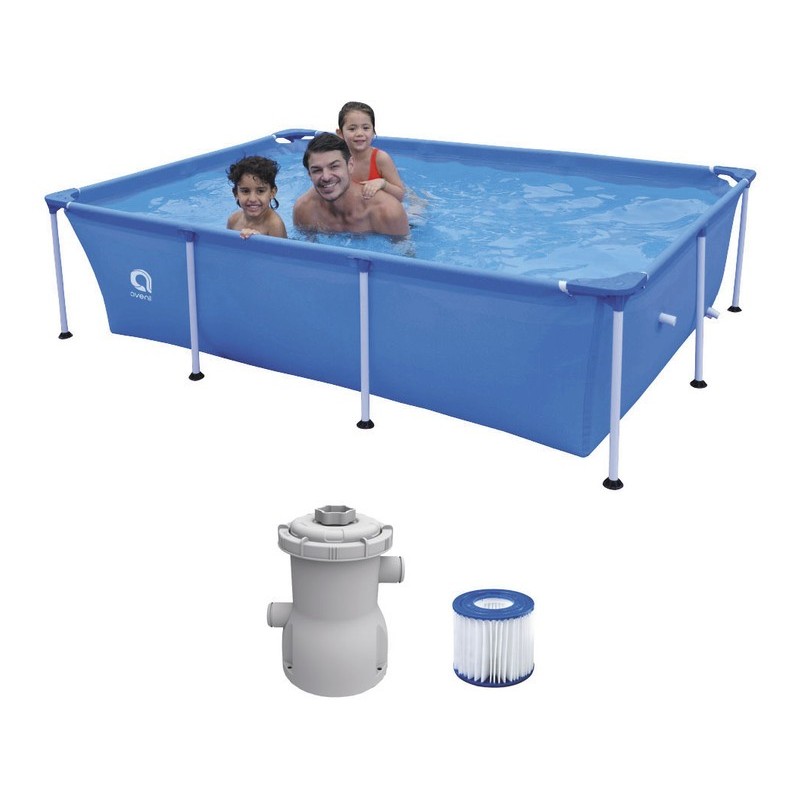 ¡Consigue ya la nueva Piscina Desmontable Steel Super Rectangular Pool con Depuradora de Jilong! Consigue esta gran piscina desmontable para disfrutar de el verano de la manera mas divertida y relajada posible. Este nuevo modelo cuenta con muchas ventajas, por ejemplo su gran capacidad de agua de aproximadamente 2.600 litros. Su depuradora de filtro de cartucho con caudal de 1.136 l/h. Voltaje 220-240V. Otra increíble ventaja la cual hace de esta opción la mejor para tu casa es su sencilla instalación de apenas 30 minutos y sin necesidad de herramientas para el montaje. Gracias a sus medidas y tamaño esta piscina es la opción ideal para tener en casa este verano y disfrutar en familia o con amigos. Edad Recomendada: + 6 años. Medidas aproximadas: 66 cm de alto, 258 cm de largo y 179 cm de ancho. Incluye: Piscina desmontable Steel Super Rectangular Pool de color azul y Cartucho Tipo S para la depuradora incluida. Ref. 29P481.