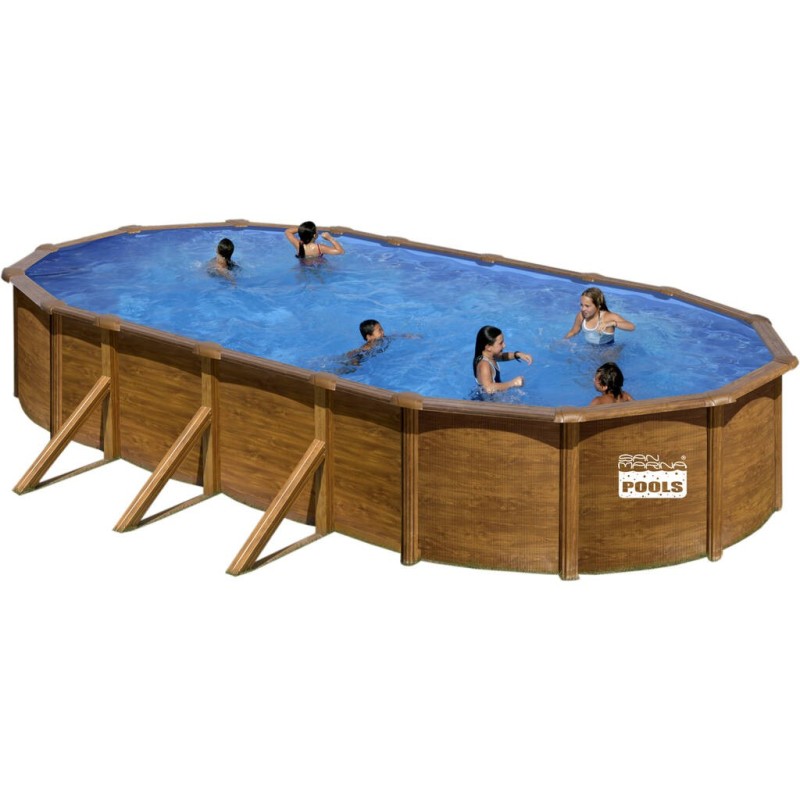 PISCINA OVALADA PARED ACERO IMITACION MADERA GRE DREAM POOL SERIE MAURITIUS KPROV618WO. Fantástica para jardín o terraza....