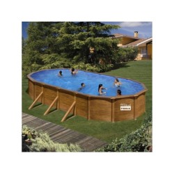 PISCINA OVALADA PARED ACERO IMITACION MADERA GRE DREAM POOL SERIE MAURITIUS KPROV618WO. Fantástica para jardín o terraza. Características: - Tamaño 610 x 375 x 132 cm (largo x ancho x alto) - Cabida 23.281 Litros (aprox.) - Espacio preciso para montaje: 650 x 595 cm (lado x lado) - Perfilado acero (15 cm horizontal / 12 cm vertical) - Protectores inyección Con: - Liner PVC de color azul 40/100 de calidad alta - Depuradora arena para 5 m3/Hora - Escalera seguridad (2 x 3 escalones) y plataforma - Suelo tapizado de polietileno - Limpiafondos a batería VCB50. - Smart Plug. Garantía y servicio postventa por fabricante