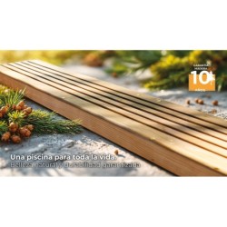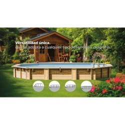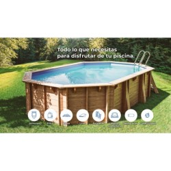 Disfruta de todas las ventajas de una piscina de madera en casa, al hacerte con esta impresionante y genial Piscina Ovalada Madera Bambu 2 de 535x335x136 cm cm de Gre. Una piscina de altas prestaciones, con más de cinco metros de largo, totalmente equipada y un aspecto de lo más elegante, para darle el toque soñado al jardín de casa. El pack incluye: - 1 piscina Bambu 2 de madera. - Liner de PVC con un grosor de 60/100 y tratamiento especial contra los rayos UV. - Depuradora con filtro de arena con capacidad de 6.000 l/h y arena incluida. - Escalera con diseño de madera en la parte exterior y de acero inoxidable en la parte interior. - Manta protectora de espesor 200 g/m². - Embellecedores metálicos, playas dobles (14,5 cm x 2 = 29 cm), espesor 2,8 cm, machiembrado 19 cm y espesor de la madera de 46 mm. Información de interés sobre el artículo: - Edad recomendada para su disfrute: + 6 años. - Medidas aproximadas de la piscina: 535 cm de largo x 335 cm de ancho x 136 cm de alto. - Medidas aproximadas del interior de la piscina: 487 cm de largo x 287 cm de ancho x 133 cm de alto (línea de flotación a 123 cm de alto). - Espacio mínimo necesario para su instalación: 545 cm de largo x 435 cm de ancho x 15 cm de profundidad (3,56 m³). - Capacidad aproximad de la piscina: 15.400 litros. - Peso aproximado de la piscina sin agua: 1.381 kg. - Sistema de Omegas, losa de hormigón opcional.