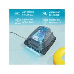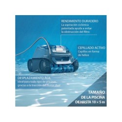 Si buscas la limpieza más eficiente, rápida y sencilla para tu piscina de siempre, aquí tienes el nuevo y eficaz Robot Limpiafondos Zodiac CNX 2590 para Piscinas Enterradas y Elevadas de Gre, disfruta de todas sus ventajas de uso desde el primer día que llega a casa. El pack incluye: - 1 robot limpiafondos CNX 2590 de Zodiac con tres motores con protección, tracción por orugas, transmisión por engranajes, sistema de parada automática al salir del agua, sistema de playa, filtro con capacidad de 4 litros con tapa transparente para ver el filtro, diseño ligero de gran resistencia y unidad de control con base. Información de interés sobre el artículo: - Edad recomendada para su disfrute: + 16 años. - Medidas aproximadas del robot limpiafondos: 30 cm de alto, 40 cm de ancho y 43 cm de fondo. - Para piscinas enterradas y elevadas de hasta 10 metros de largo y 5 metros de ancho con paredes rígidas de cualquier forma, fondos y revestimientos. - Zonas de limpieza: Fondo, paredes y línea del agua. Ciclos de limpieza: 2 modos de limpieza. - Peso aproximado del artículo: 8 kg. - Longitud aproximada del cable: 15 m. - Nivel filtrado: 150/60 micrones. - Cobertura de limpieza: 23 cm. - Superficie filtrante: 1.066 cm².
