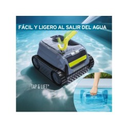 Uno de los robots más eficaces y potentes para tu piscina de siempre te espera, no dejes escapar el nuevo Robot Limpiafondos Zodiac OF 4220 iQ Freedom para Piscinas Enterradas y Elevadas de Gre. Disfruta de todas sus funciones incluso a distancia, gracias a la app iAquaLink, que te permite controlar sus funciones a través de tu smartphone. ¡Con tecnología “Tap&Lift” que te permite con solo un golpe hacer que el robot llegue a la línea de flotación! Conecta tu smartphone al limpiafondos gracias a tu smartphone y la app iAquaLink, controlando así los ciclos de limpieza, recibir alertas informativas, ajustar el modo de limpieza y muchas más ventajas de uso. El pack incluye: - 1 robot limpiafondos OF 4220 iQ Freedom de Zodiac con dos motores con protección, batería litio recargable, tracción de orugas, transmisión por engranajes, sistema de parada automática al salir del agua, sistema de playa, filtro con capacidad de 3 litros, sistema de aspiración ciclónica, diseño ligero de gran resistencia, gancho de recuperación del robot en el agua y cable cargador para el robot. Información de interés sobre el artículo: - Edad recomendada para su disfrute: + 16 años. - Medidas aproximadas del robot limpiafondos: 30 cm de alto, 30 cm de ancho y 43 cm de fondo. - Para piscinas enterradas y elevadas de hasta 10 metros de largo y 5 metros de ancho con paredes rígidas de cualquier forma, fondos y revestimientos. - Zonas de limpieza: Fondo, paredes y línea del agua. - Peso aproximado del artículo: 8,9 kg. - Nivel filtrado: 100 micrones. - Cobertura de limpieza: 23 cm. - Superficie filtrante: 480 cm².