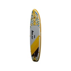 Disfruta de las olas, el mar y mucho más, a bordo de esta nueva y espectacular Tabla Paddle Surf de 335x81x13 cm Evasion Epic E11 11’ de Zray. Una tabla hinchable muy especial, por sus medidas, materiales de fabricación y accesorios incluidos. Experimenta las ventajas de una tabla de paddle surf propia, explorando tus calas preferidas, relajándote en zonas habilitadas, practicando deporte y un sin fin de geniales usos más. Incluye: + Tabla de paddle surf hinchable Evasion Epic E11 estilo All Around de color amarilla, azul y blanca con una aleta central extraible con pasador de bloqueo, asa ergonómica, cuerda elástica de carga, casco con entrada elevada, cola elevada, base de espuma EVA y anillos de acero para anclar correas y asiento de kayak (asiento no incluido). + Remo de aluminio tratado con medida ajustable. + Hinchador manual con medidor de presión. + Mochila de transporte y almacenaje. + Leash de seguridad para el tobillo. Datos a tener en cuenta: + Edad recomendada para su disfrute: 14 años o más. + Peso máximo que soporta: 122 kg. + Medidas aproximadas de la tabla: 13 cm de alto x 81 cm de ancho x 335 cm de largo. + Longitud de la tabla en pies: 11’. + Presión máxima recomendada: 15 PSI. + Volumen: 310 l.